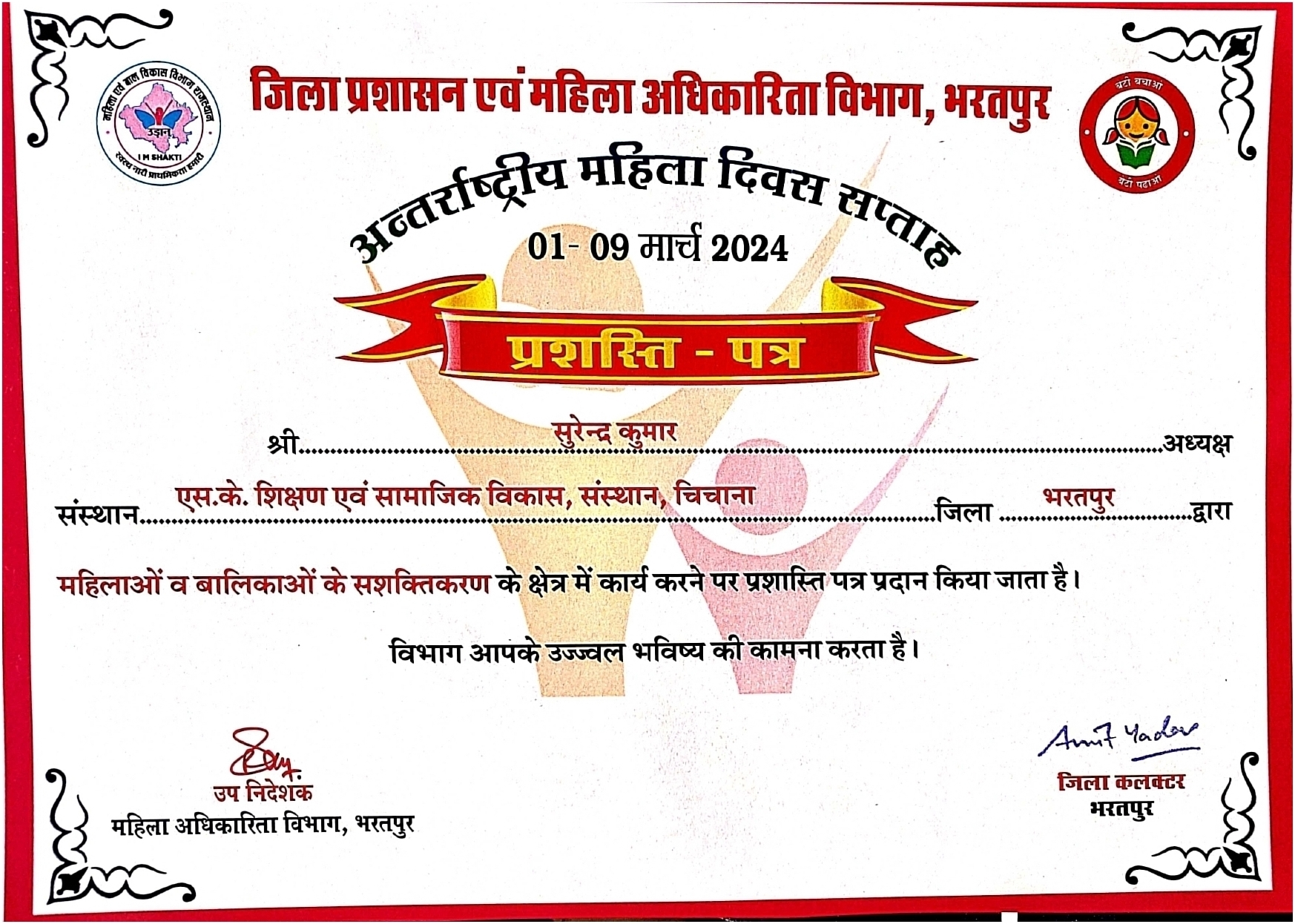 एस. के. शिक्षण एवं सामाजिक विकास संस्थान, चिचाना भरतपुर में आपका स्वागत है
